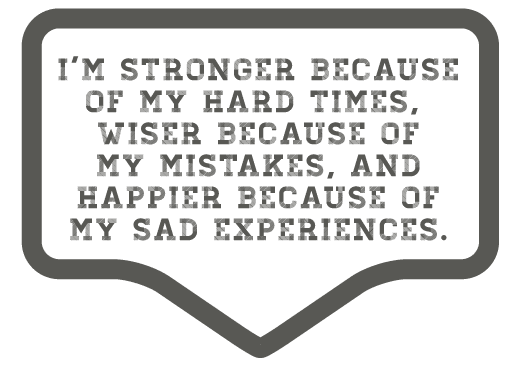 I'm stronger because of my hard times, wiser because of my mistakes, and happier because of my sad experiences