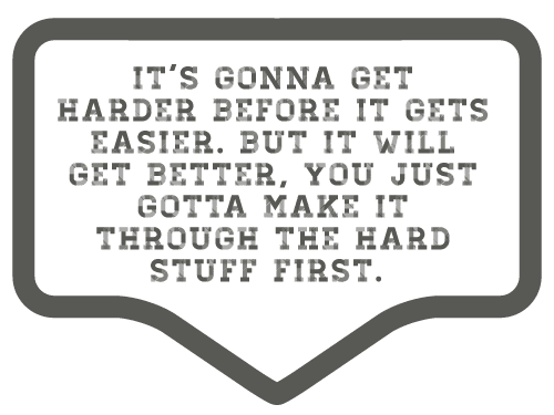 It's gonna get harder before it gets easier. But it will get better, you just gotta make it through the hard stuff first