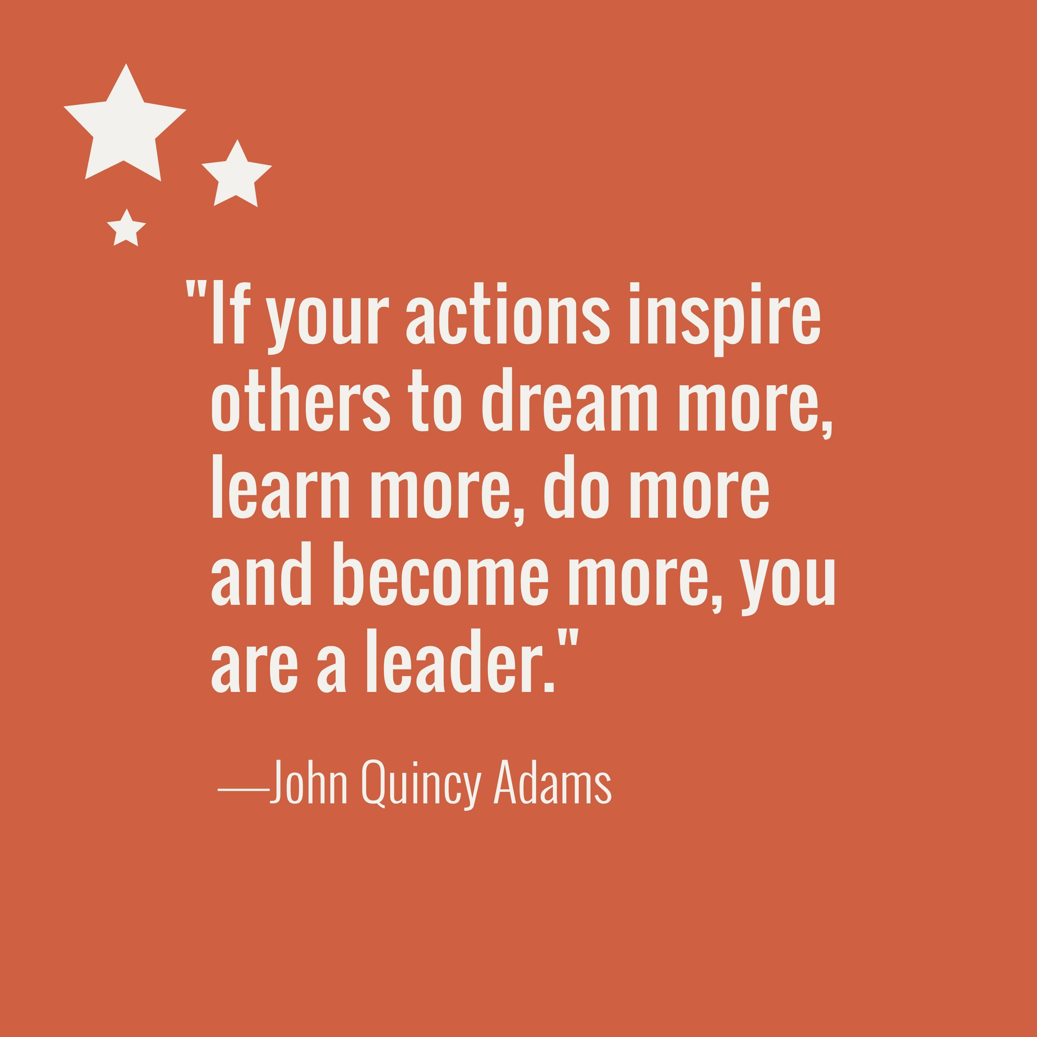 “If your actions inspire others to dream more, learn more, do more and become more, you are a leader.” – John Quincy Adams
