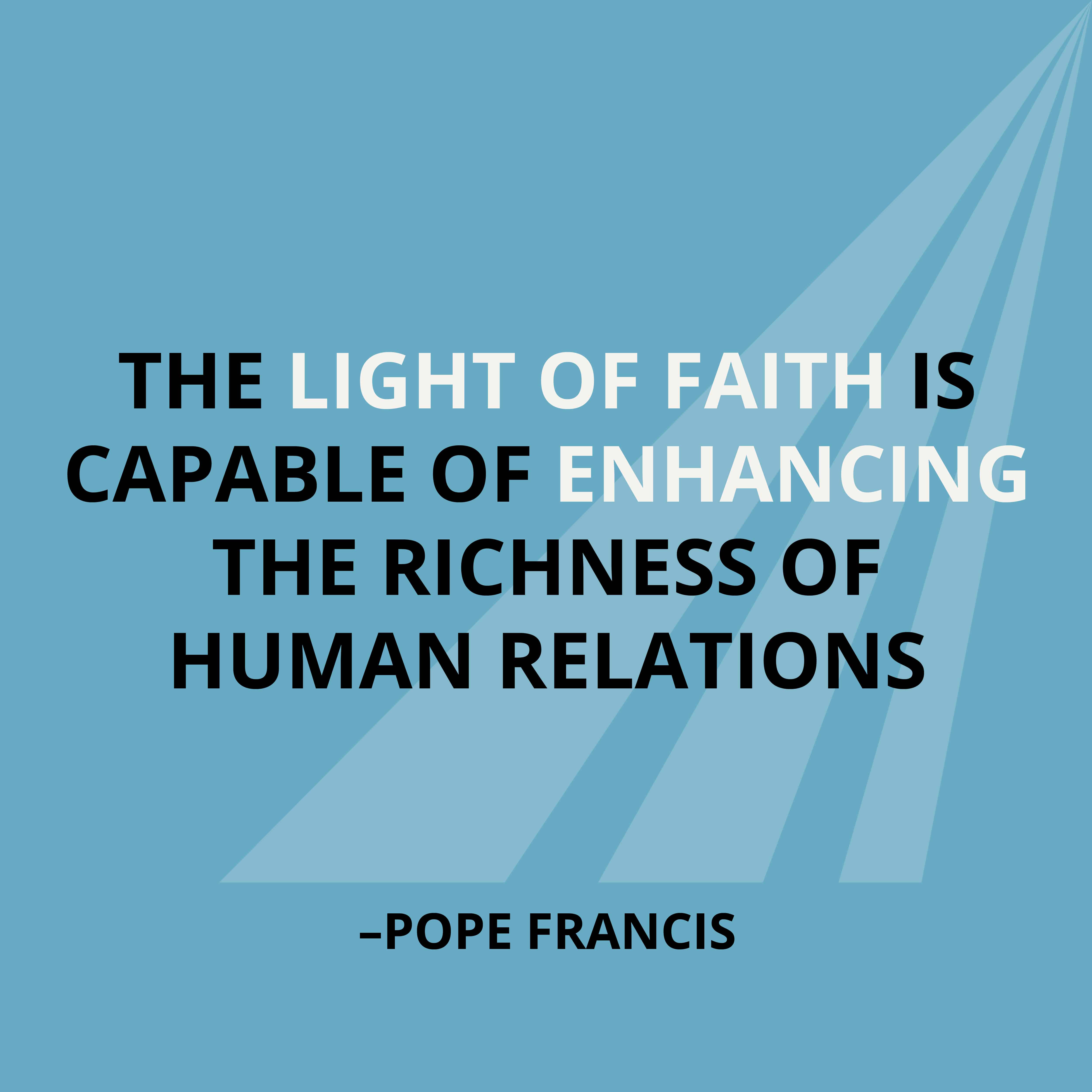 “The light of faith is capable of enhancing the richness of human relations, their ability to endure, to be trustworthy, to enrich our life together.” -Pope Francis